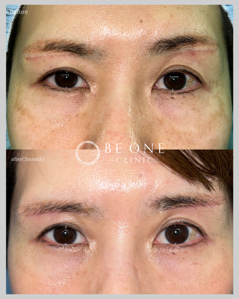 眉毛に隠れる位置で修正しました。(術後1ヶ月)